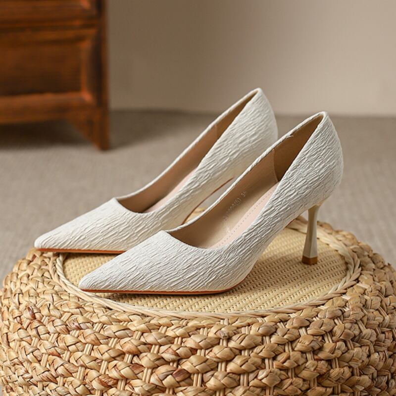 ポインテッドトゥ スティレットヒール テクスチャード パンプス U0357