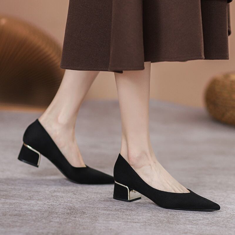 メタルヒール スエードポインテッドトゥ パンプス U0350