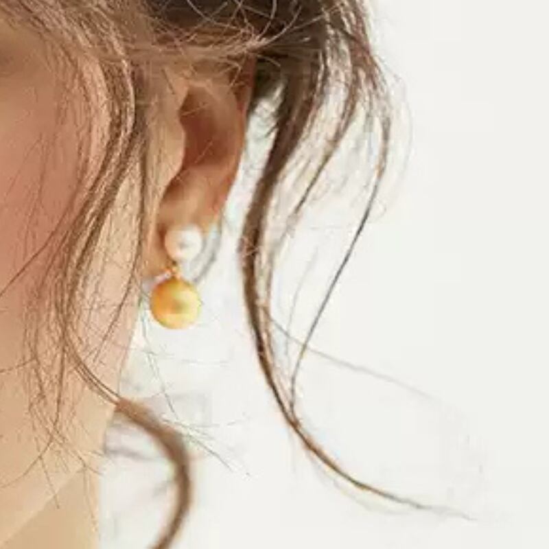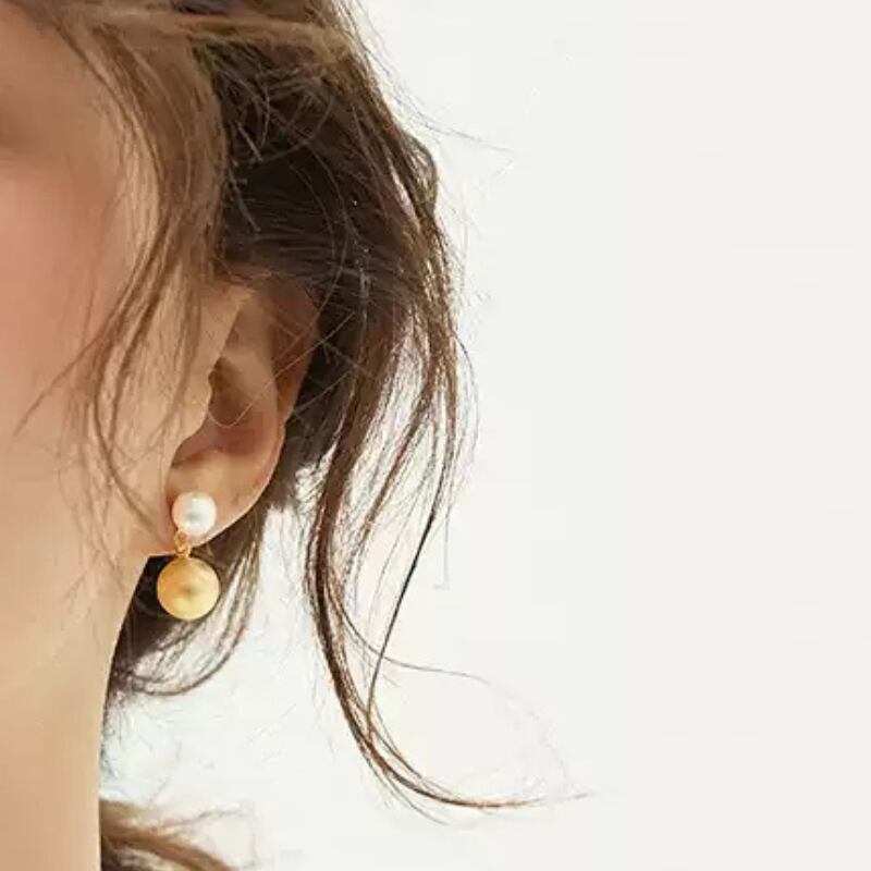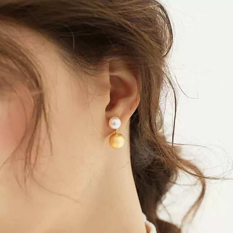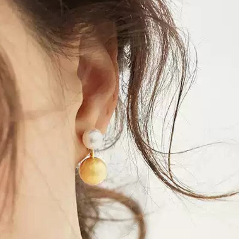 ゴールドボールとパールが揺れる、上品なダブルピアス。さりげない輝きが、普段の装いを華やかに彩ります。シンプルなデザインなので、オフィスシーンからカジュアルなスタイルまで、幅広いコーディネートに合わせやすく、デイリー使いに最適です。