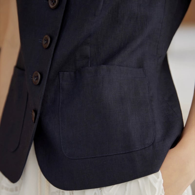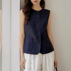 リネンノースリーブストレートヘムベスト U0474