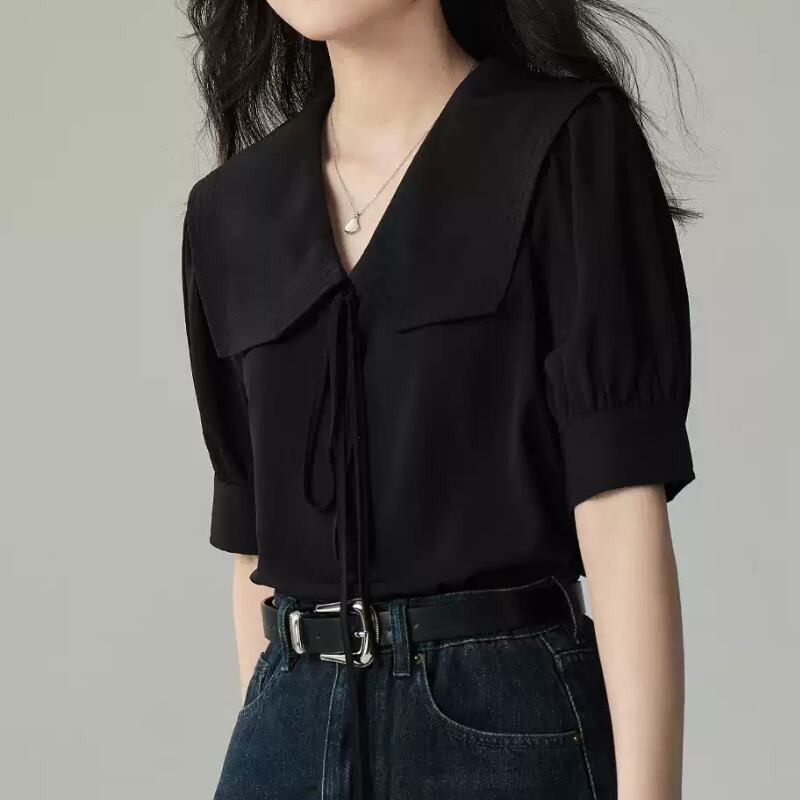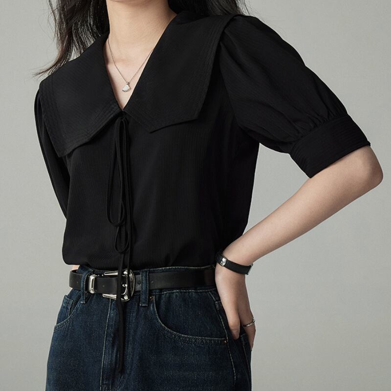 セーラーカラーリボンタイパフスリーブブラウス U0471