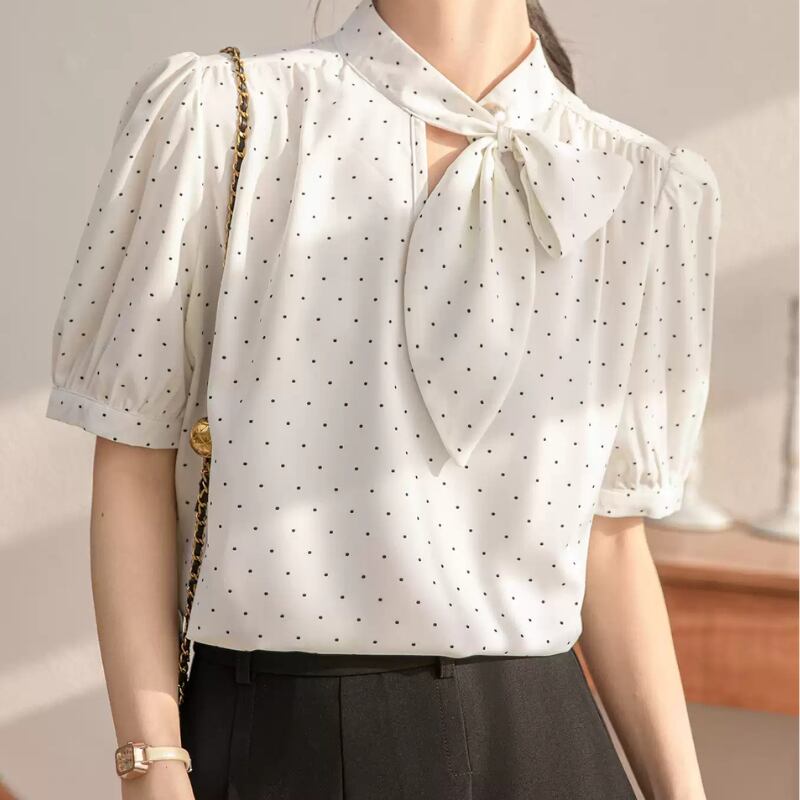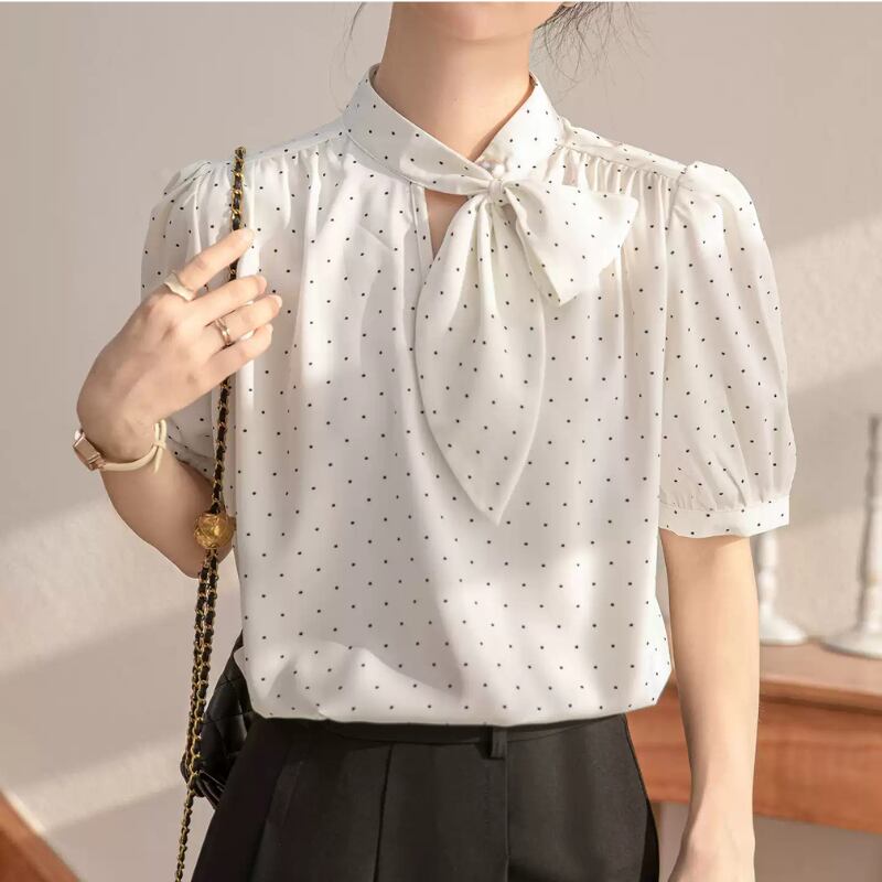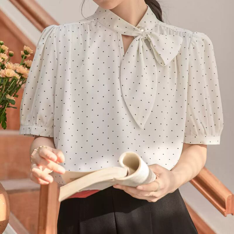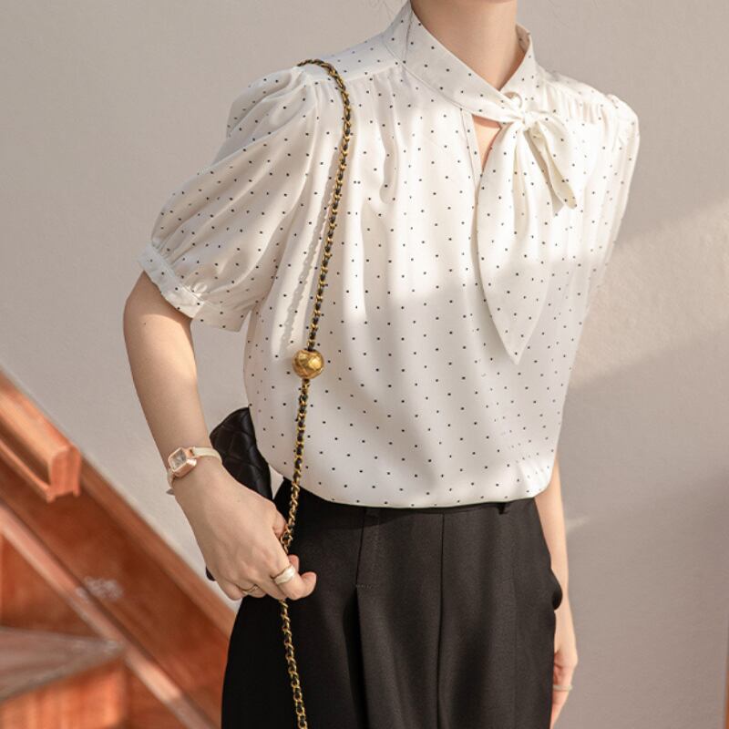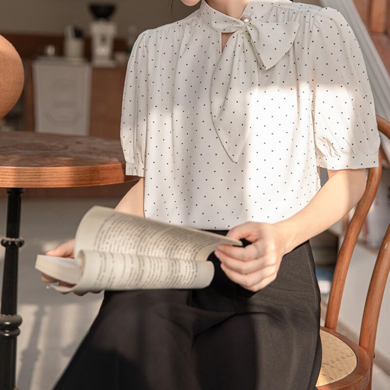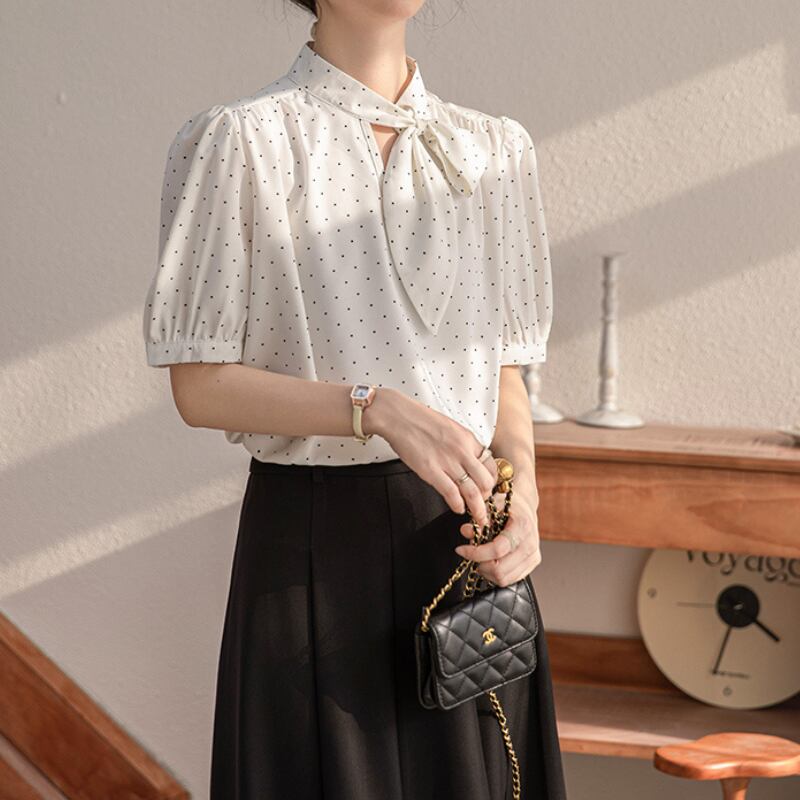 パフスリーブドットボウタイブラウス U0495