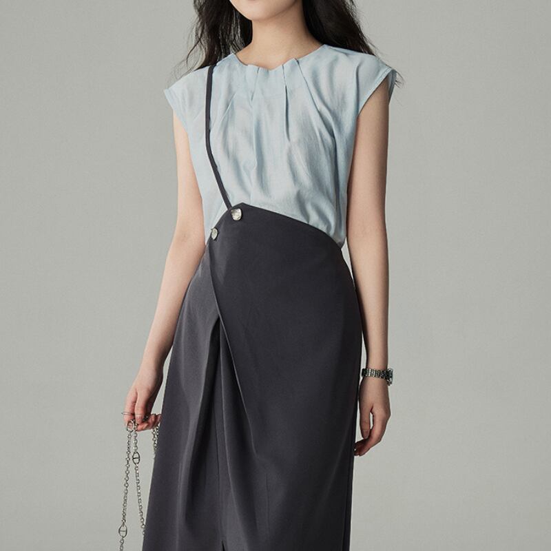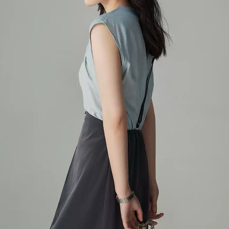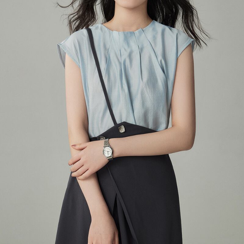 フレンチスリーブの涼しげなトップスは、首元のタックいんが特徴的で大人っぽく上品な印象を与えます。