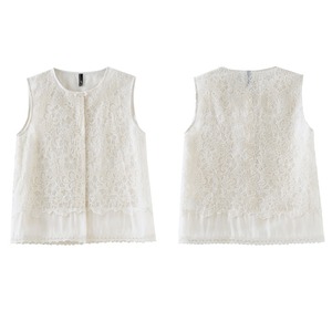 スリーブレスホワイトステッチレースベスト U0549