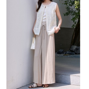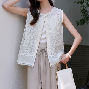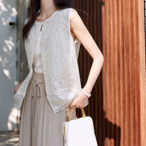 ノースリーブのレースベストは、繊細な花柄のレースが魅力的。
