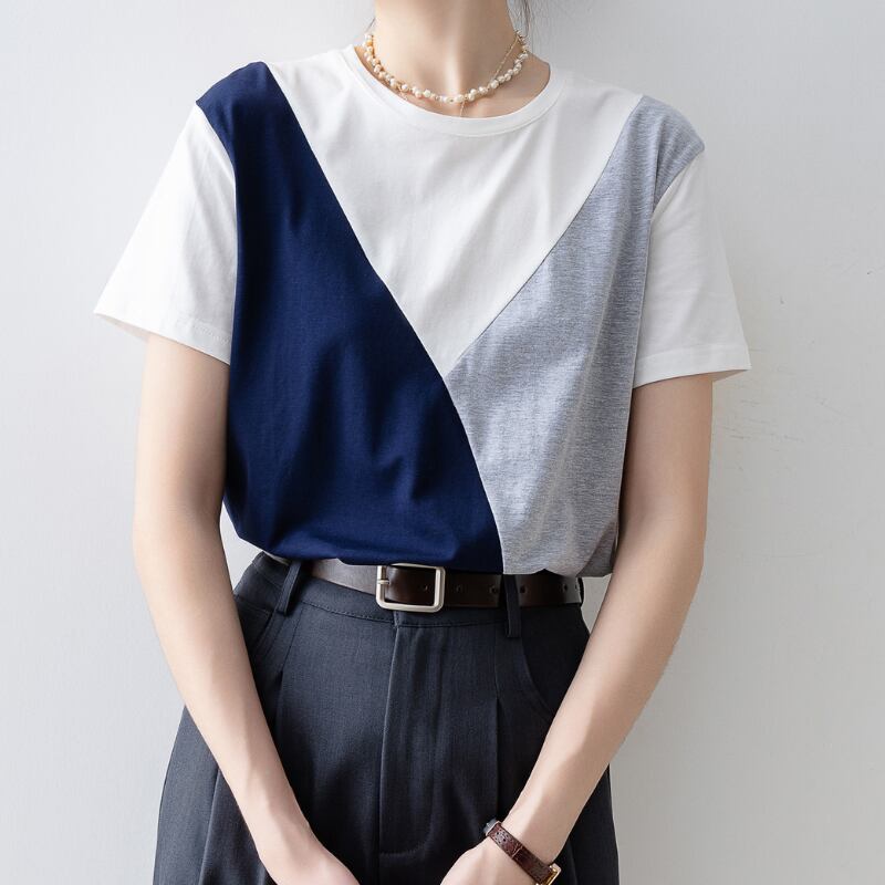 カラーブロックラウンドネック Tシャツ U0528