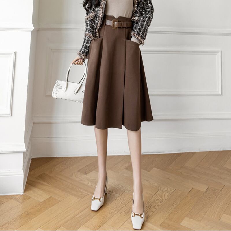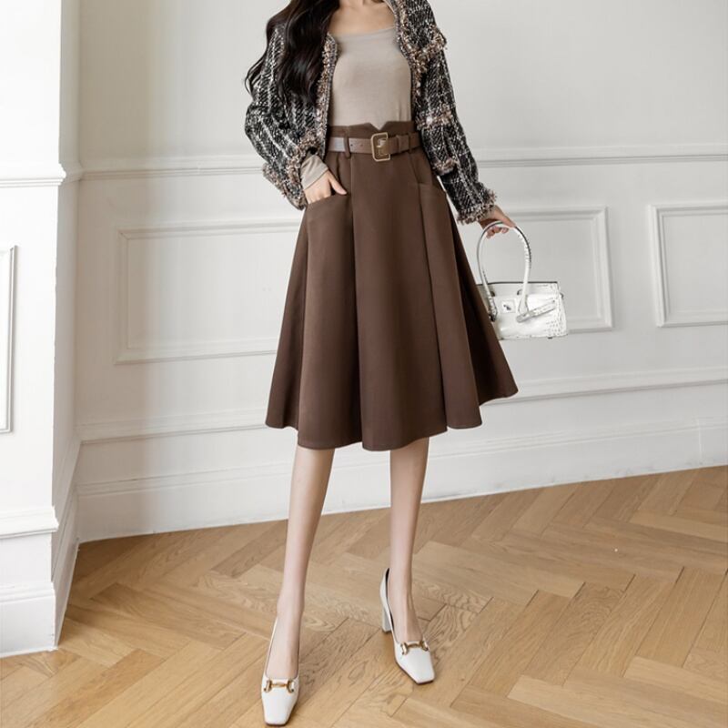 ハイウエストプリーツAラインスカート U0102