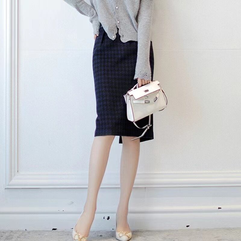ハイウエスト千鳥格子スリットヒップスカート U0204