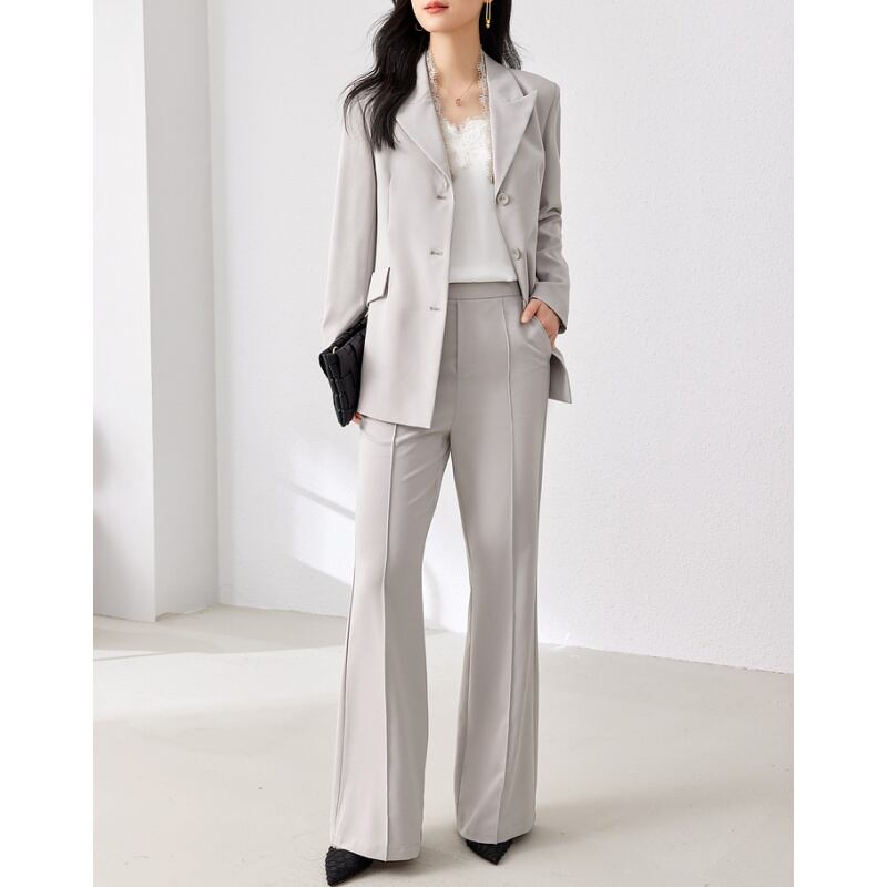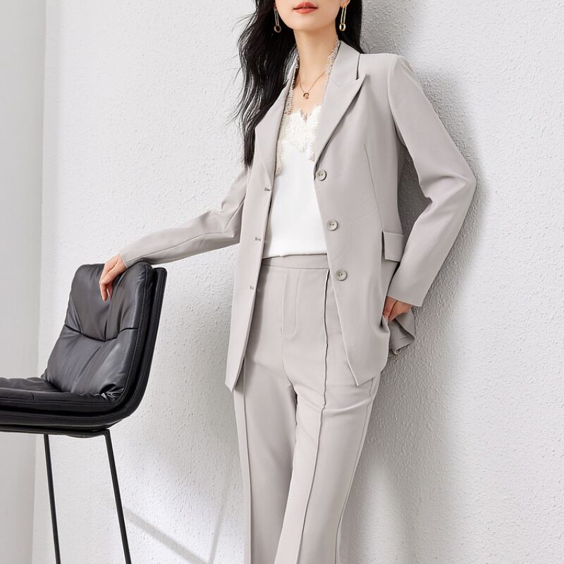 シンプルで飽きのこない、着回し力抜群のテーラードジャケットとパンツのセットアップ。