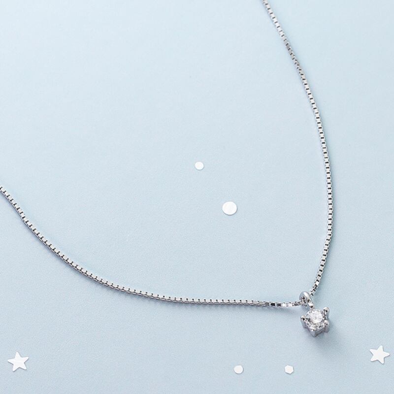 45cmの長さで首元を美しく飾る、一粒ストーンのペンダントネックレス。
