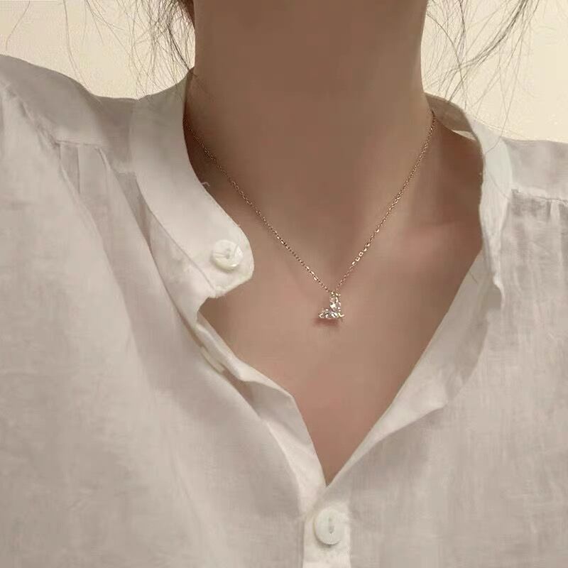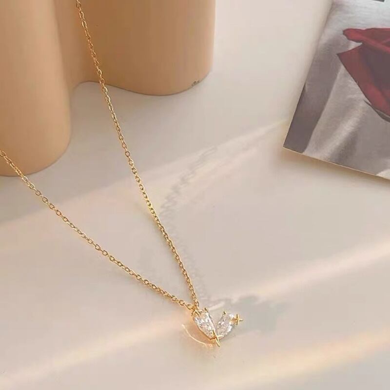 きらめくキュービックジルコニアがセッティングされたハート型のペンダントが、女性らしい可愛らしさを演出するネックレス。