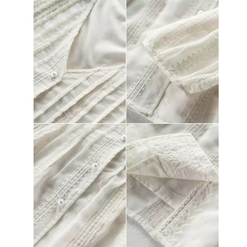 繊細な刺繍が施されたシースルー素材が、上品さと華やかさをプラス。